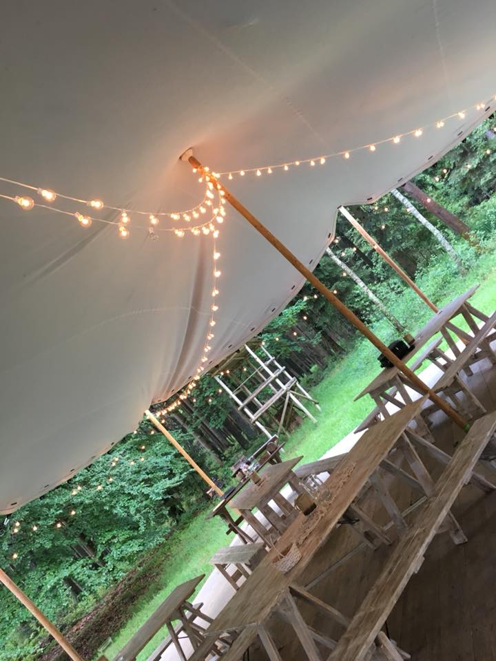 Stále větší oblibě se těší VIP svatební stany, které dodáváme s nádhernou baldachýnovou dekorací, kulatými stoly pro 10 osob a designovými dřevěnými židlemi Tiffany.